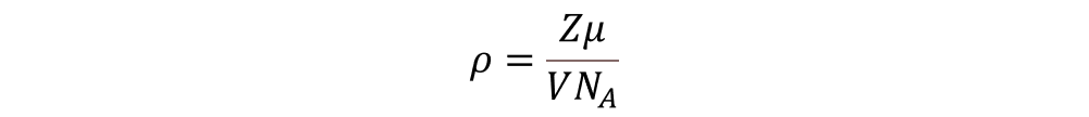 where Z is the unit-formulas within the unit-cell; µ corresponds to the molar mass of the material; V is the volume of the unit-cell; and NA is the Avogadro number. The volume of the unit-cell takes into account the changes in the space group for a material with the same crystal structure. The phase transitions of a perovskite compound come with changes in the size of the unit cell; i.e. the volume. Additionally, the phase transitions also change the number of unit-formulas of the material.
